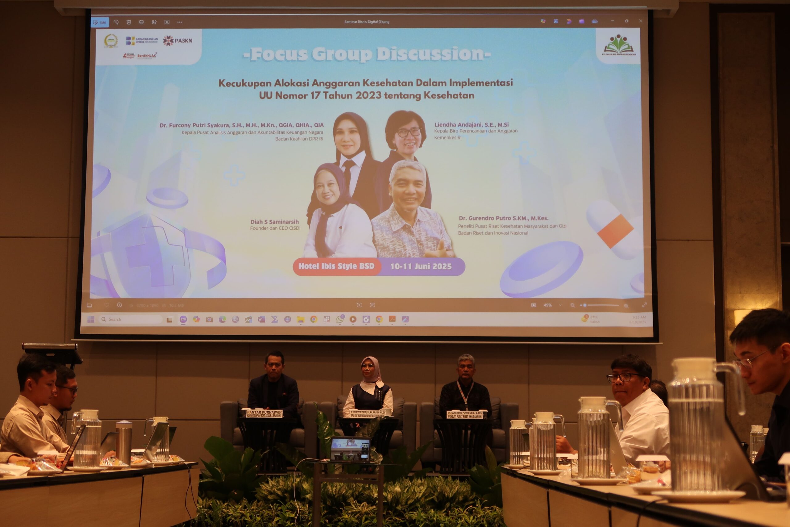 - FGD Dalam Rangka Penyusunan Kajian Tentang Kecukupan Alokasi Anggaran Kesehatan Dalam Implementasi Undang-Undang Nomor 17 Tahun 2023 Tentang Kesehatan Tanggal 10 S.d 11 Juni 2025, di Hotel Ibis Style Serpong BSD City